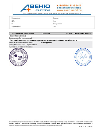 Если вам рекомендовали сдать посев на золотистый стафилококк с определением чувствительности к антибиотикам, обратитесь в поликлиники АВЕНЮ в Ростове-на-Дону — исследование выполняется в соответствии с микробиологическими стандартами.