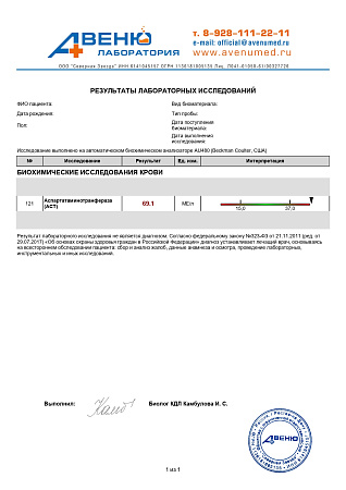 Значение АСТ (аспартатаминотрансферазы) в анализе должен трактовать лечащий врач. Он учитывает другие лабораторные и инструментальные исследования, состояние пациента, анамнез заболевания и эффективность лечения — интерпретация показателя без этих данных неинформативна.