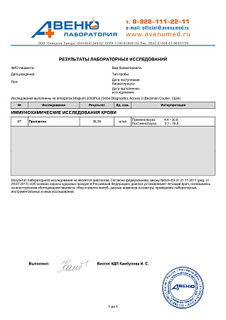 Разъяснение результатов анализов предоставляет важные сведения для доктора и не служит основанием для установления диагноза. Данные, полученные в ходе анализов, не должны применяться пациентами для самостоятельной диагностики или лечения. Окончательный диагноз определяется медицинским специалистом на основе комплексного анализа результатов данного исследования, а также истории болезни и данных из других диагностических процедур.